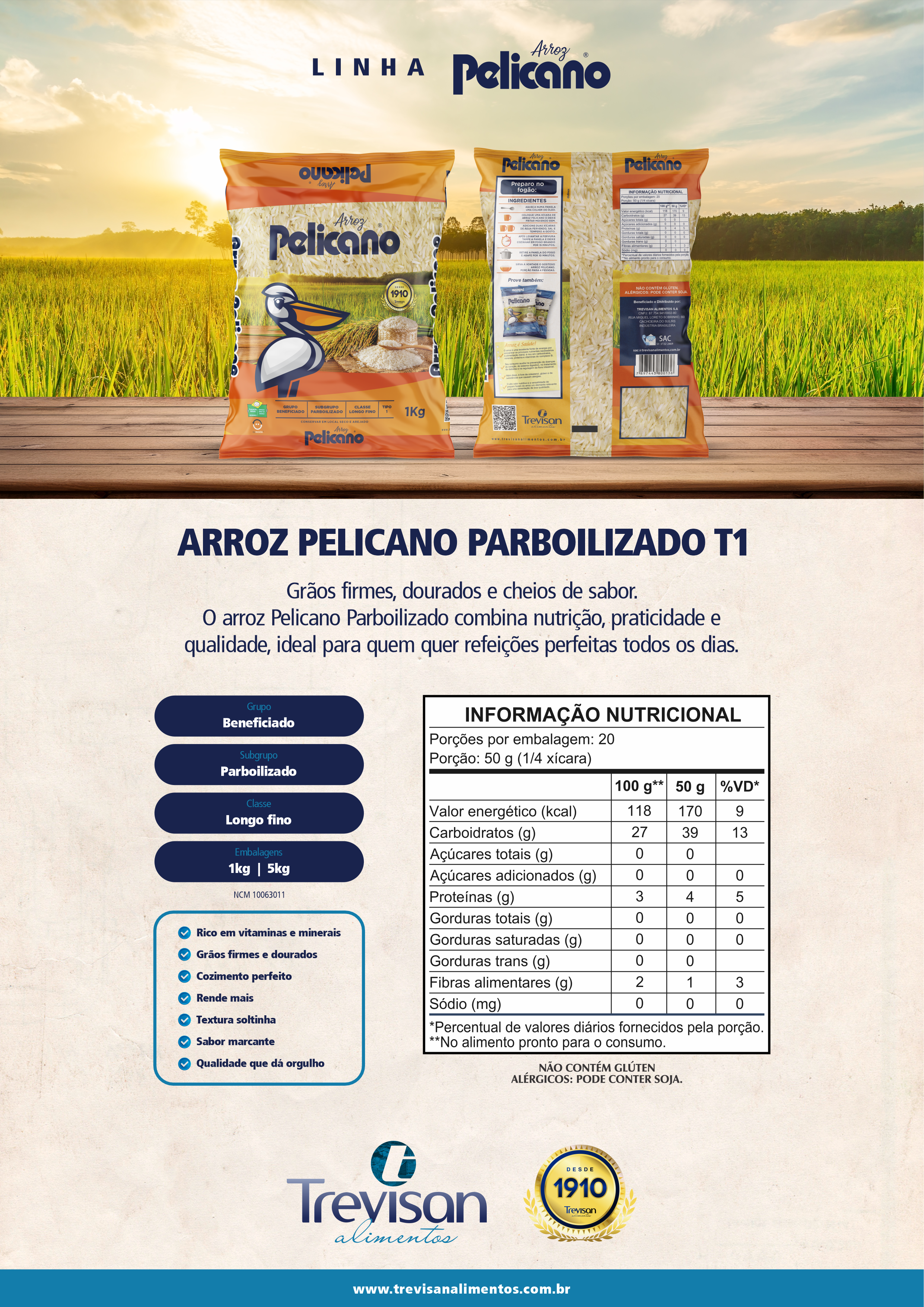 Grãos firmes, dourados e cheios de sabor. O arroz Pelicano Parboilizado combina nutrição, praticidade e qualidade, ideal para quem quer refeições perfeitas todos os dias.